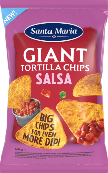 Tammikuun lopussa lanseerataan kaksi uutuussipsiä: Santa Maria Giant Tortilla Chips Salsa ja Santa Maria Giant Tortilla Chips Nacho Cheese. nämä ovat jättimäisiä, kolmion muotoisia tortillasipsejä, täydellisiä dipattavaksi tai naposteltavaksi. Sipsit sopivat myös tacolautaselle.